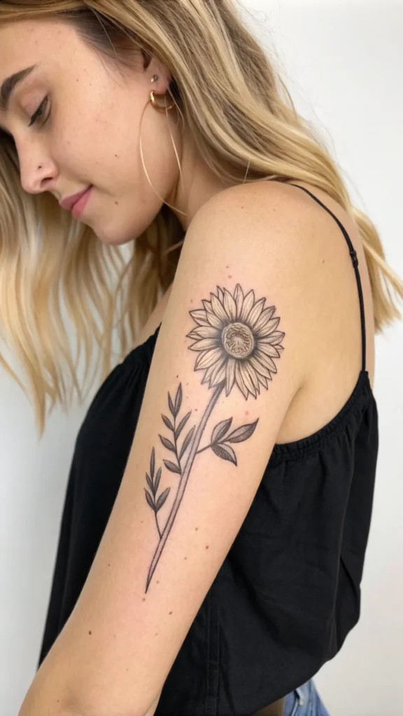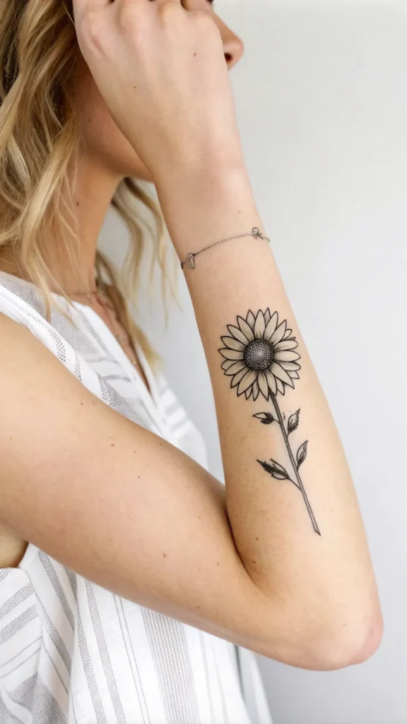 This design is ideal for those who want to showcase their love for sunflowers without going for a bold, statement piece. A delicate sunflower arm tattoo can evoke a sense of elegance and sophistication, perfect for those who value subtlety in their body art.