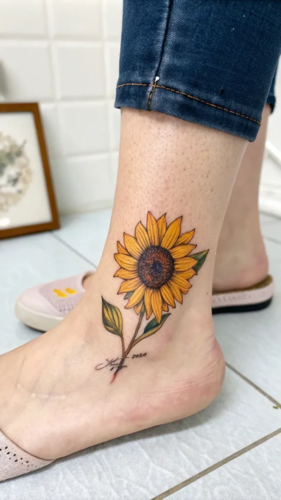 When designing a tiny sunflower ankle tattoo, consider the summer vibes you want to evoke.
